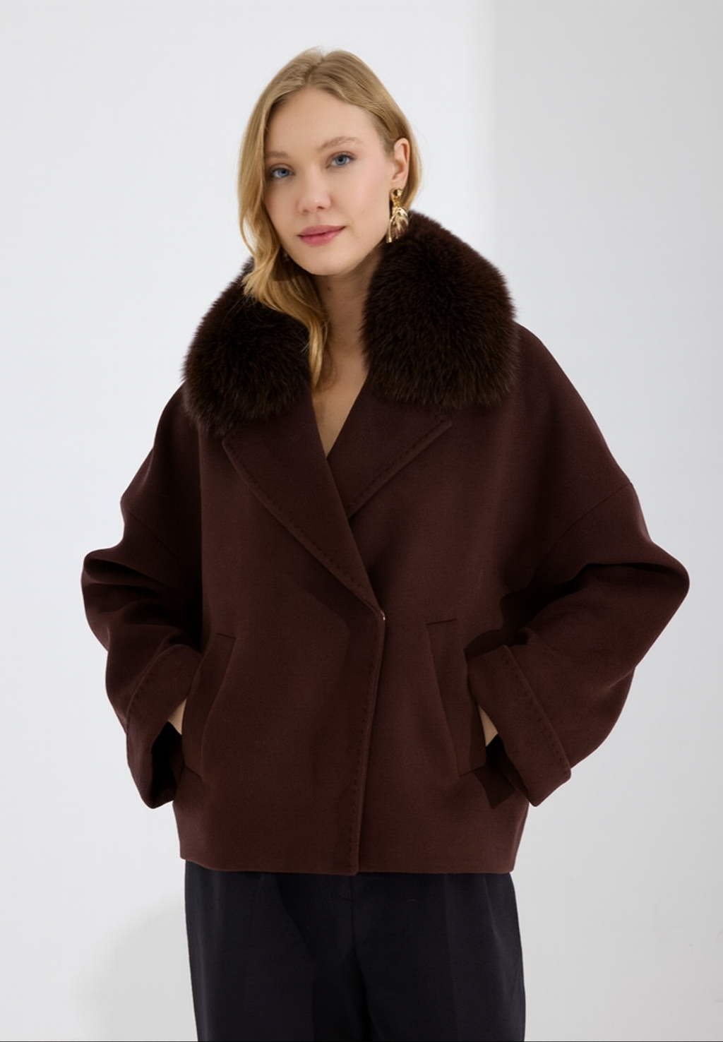 Lola Acı Kahve Cashmere Kürklü Kaban
